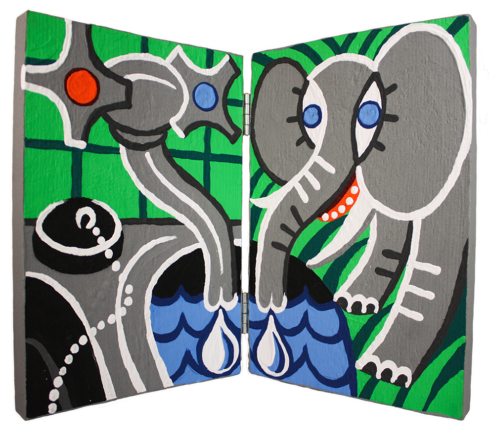 Elefantti, 2015, akryyli puulle, 30 x 40 cm