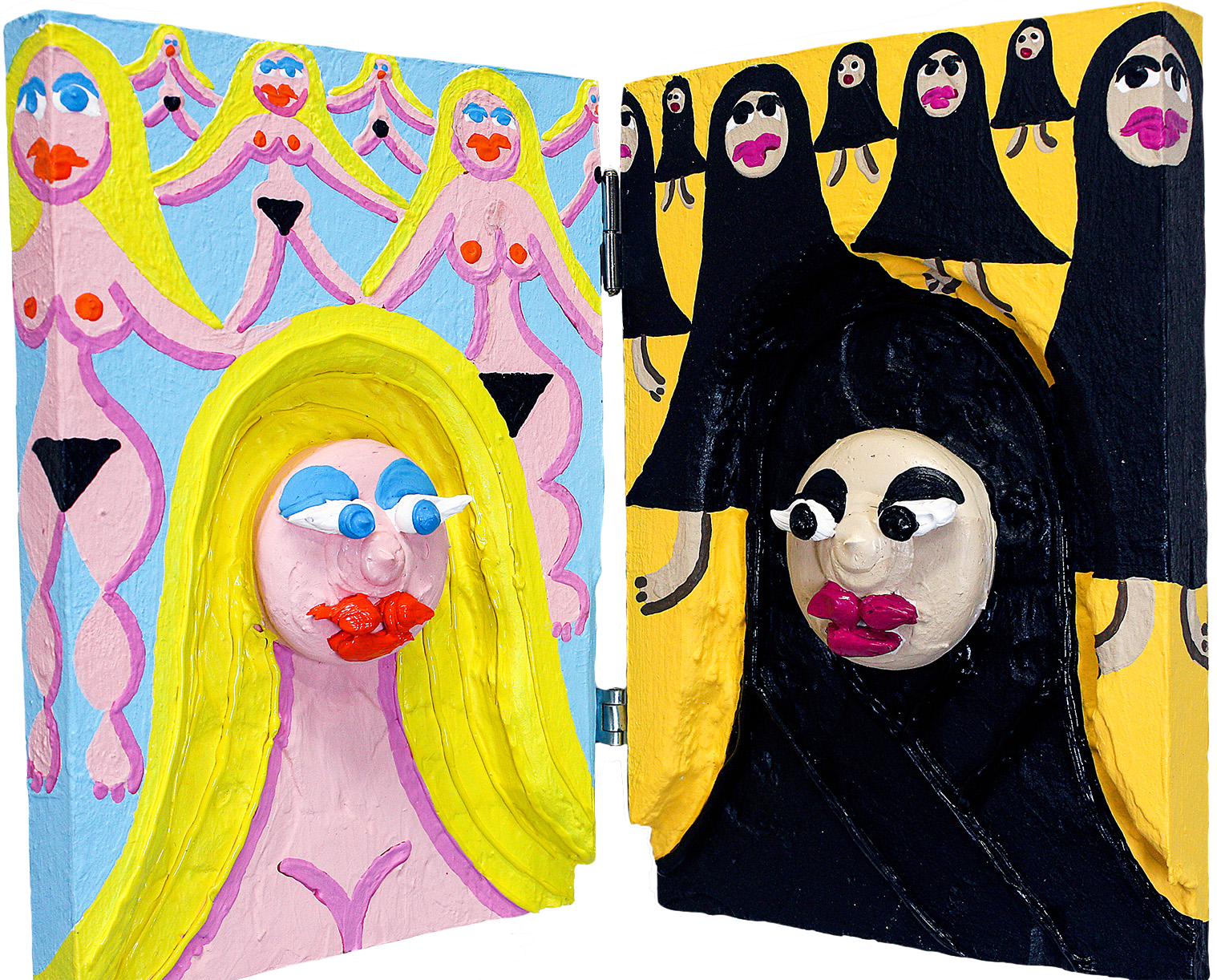 Länsi-itä, 2015, akryyli jyrsitylle puulle, 40 x 60 cm