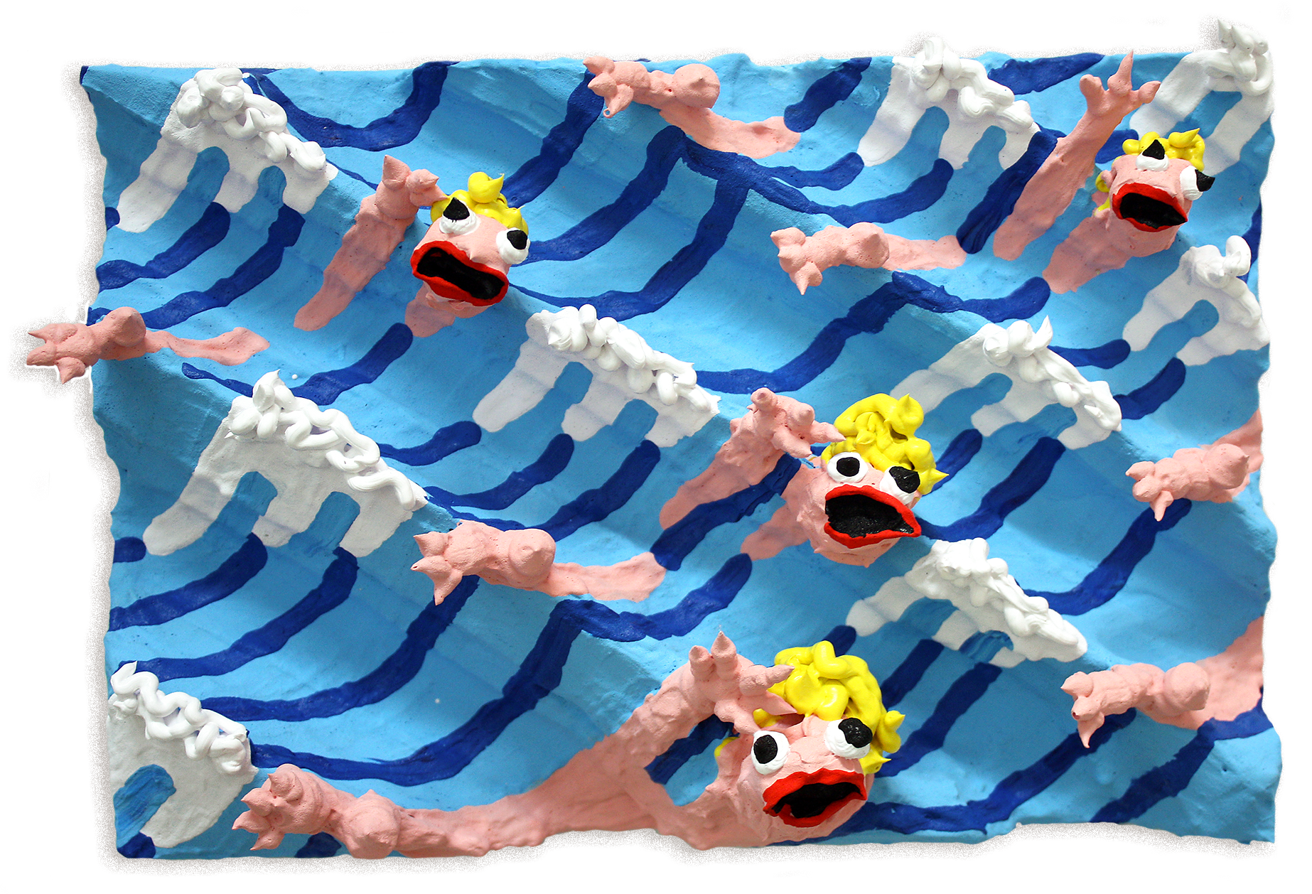 Uimarit, 2015, akryyli puulle, 20 x 30 x 6 cm