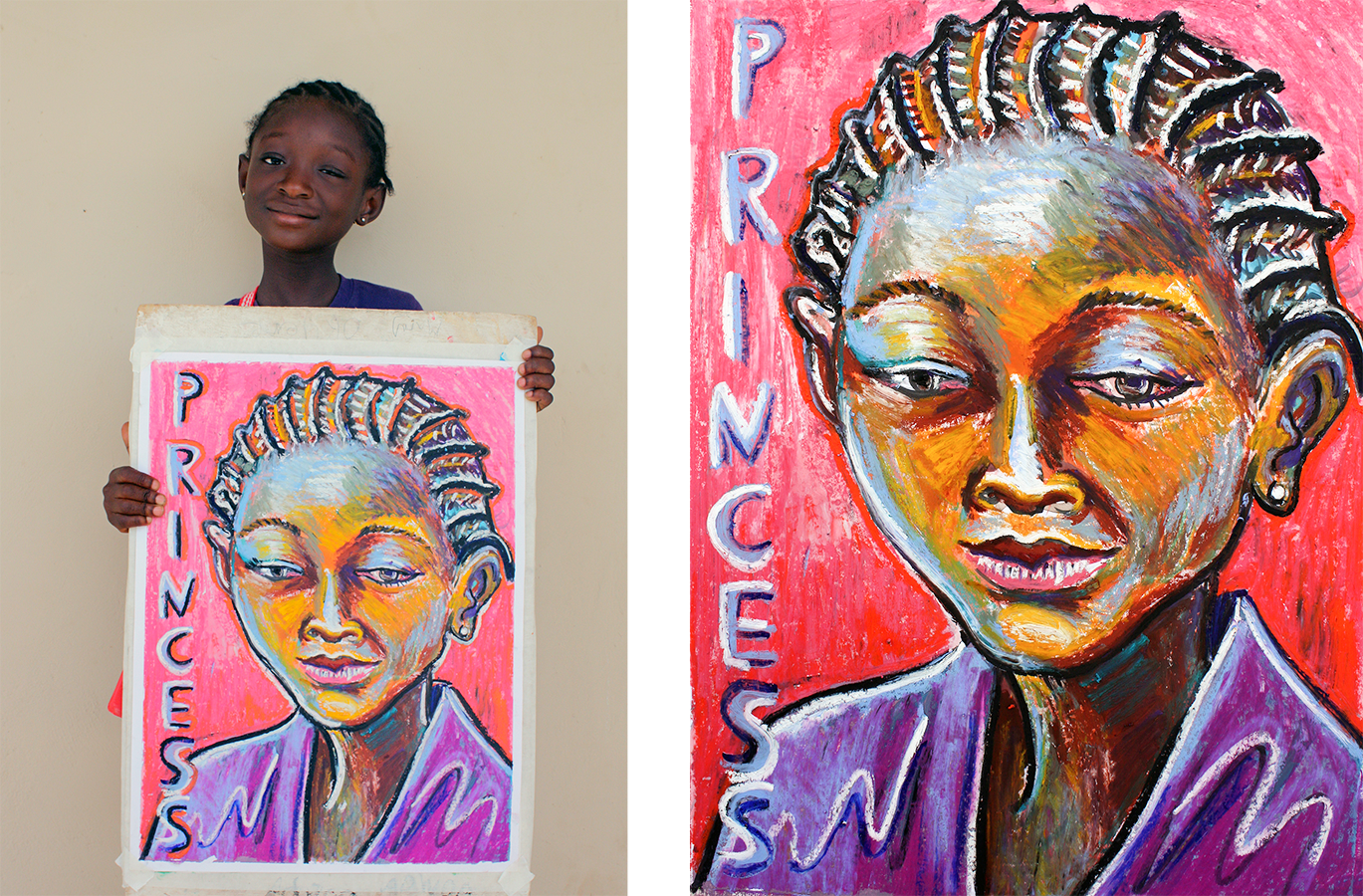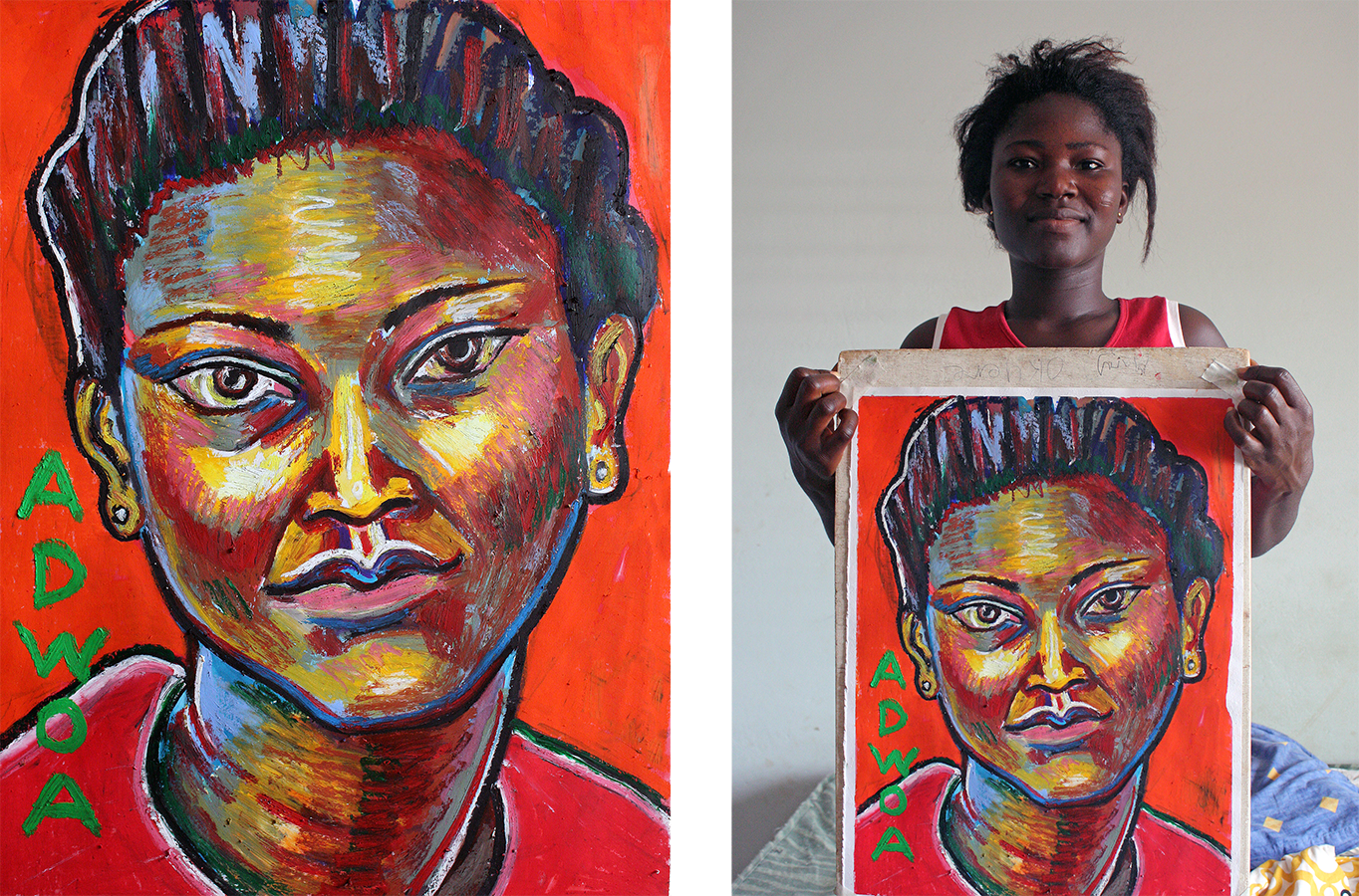 Adwoa, 2008, öljypastelli paperille, 45 x 35 cm, valokuva, 45 x 35cm