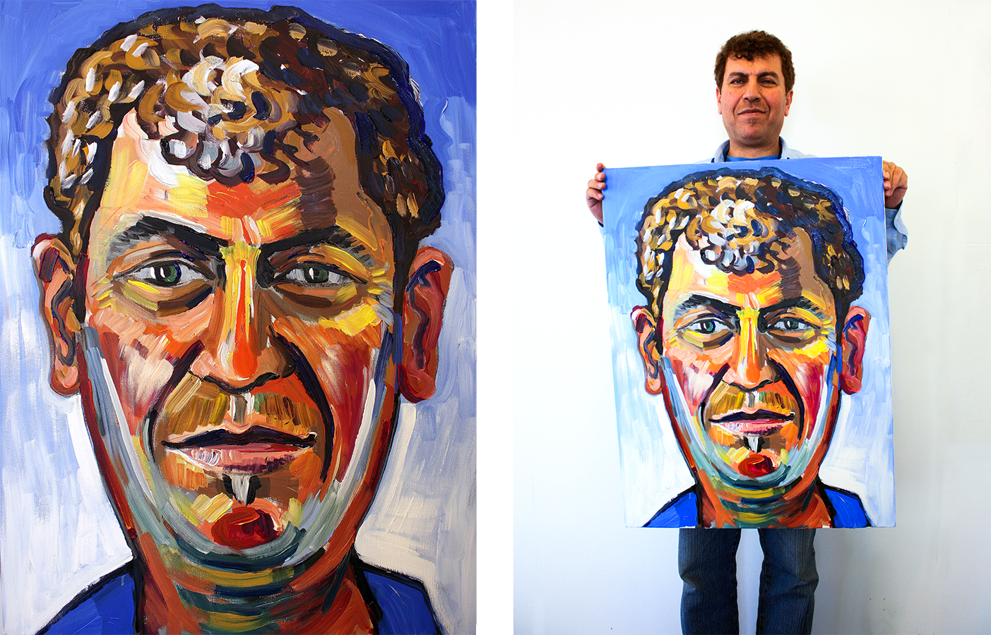 Amin, 2009, akryyli kankaalle, 80 x 60 cm, valokuva, 80 x 60 cm