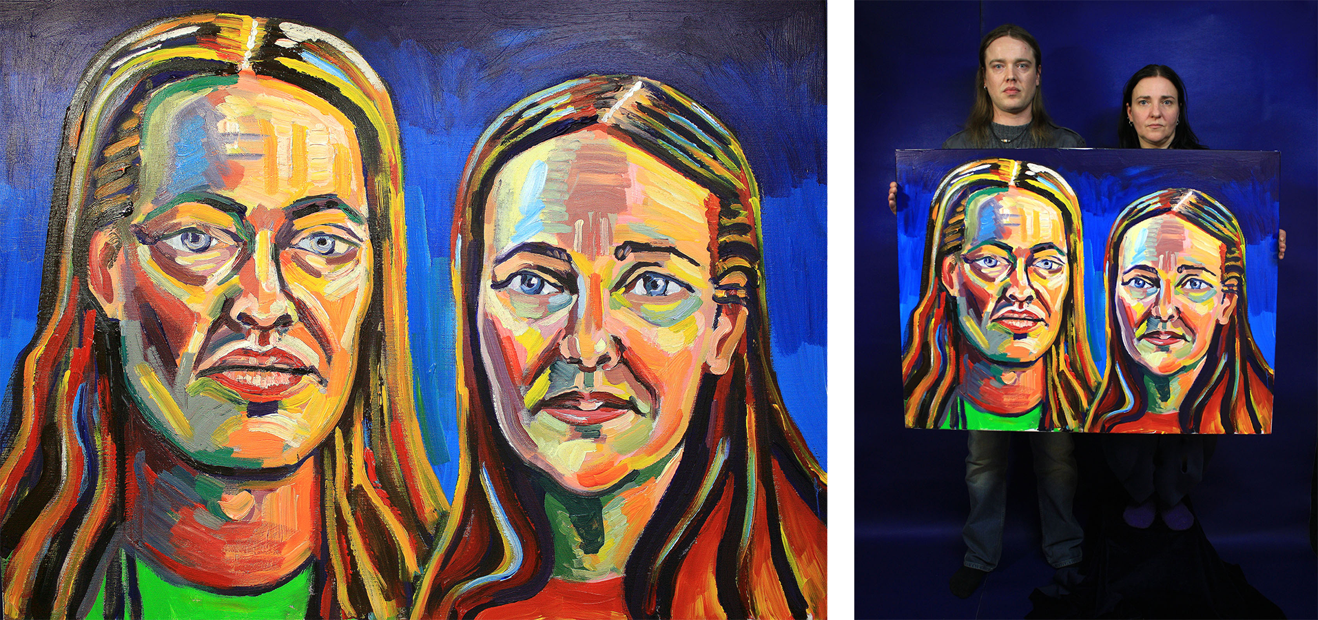 Jani ja Mari, akryyli kankaalle, 75 x 100 cm, valokuva, 75 x 56 cm