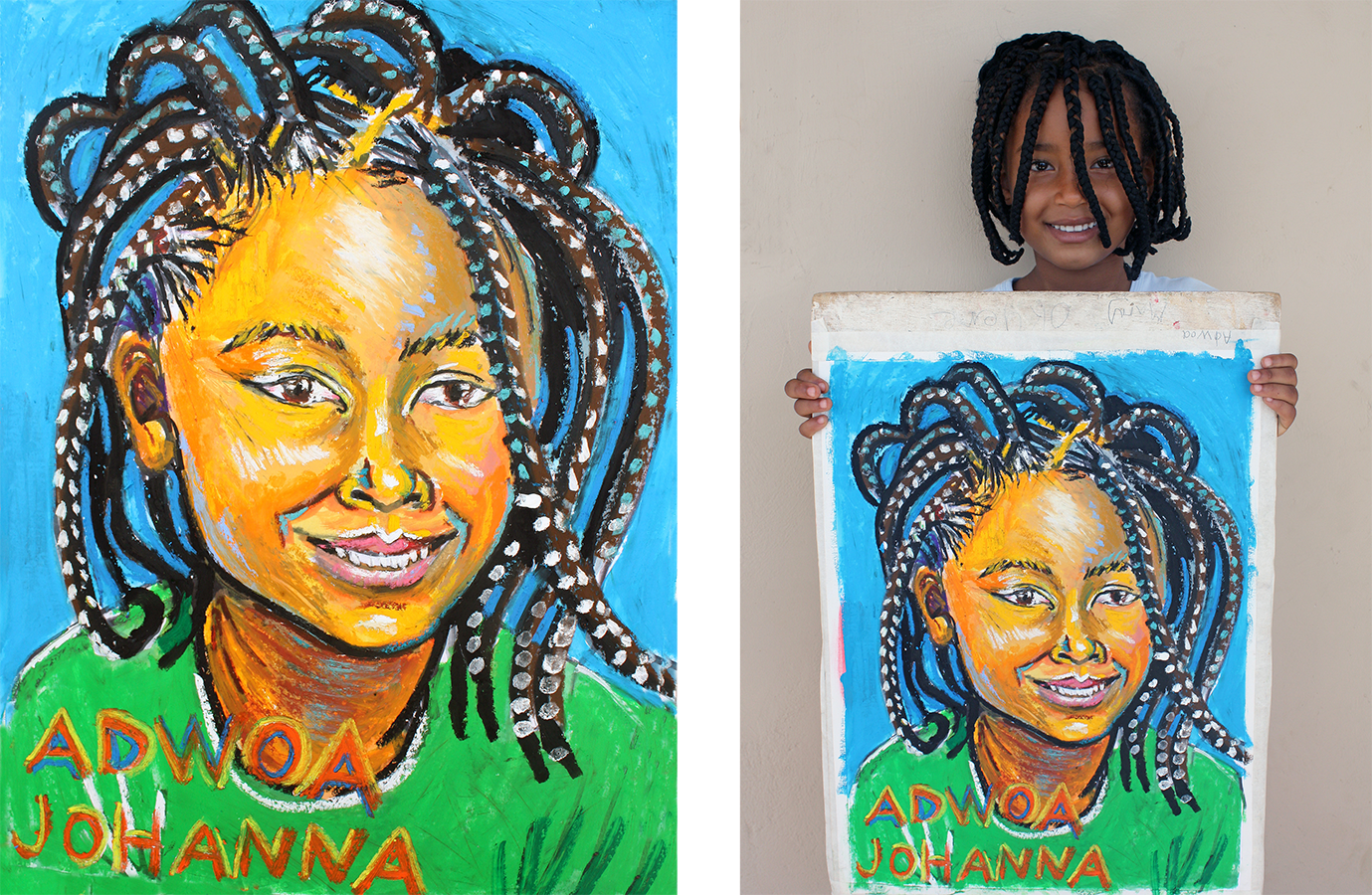 Adwoa/ Johanna, 2008, öljypastelli paperille, 45 x 35 cm, valokuva, 45 x 35 cm