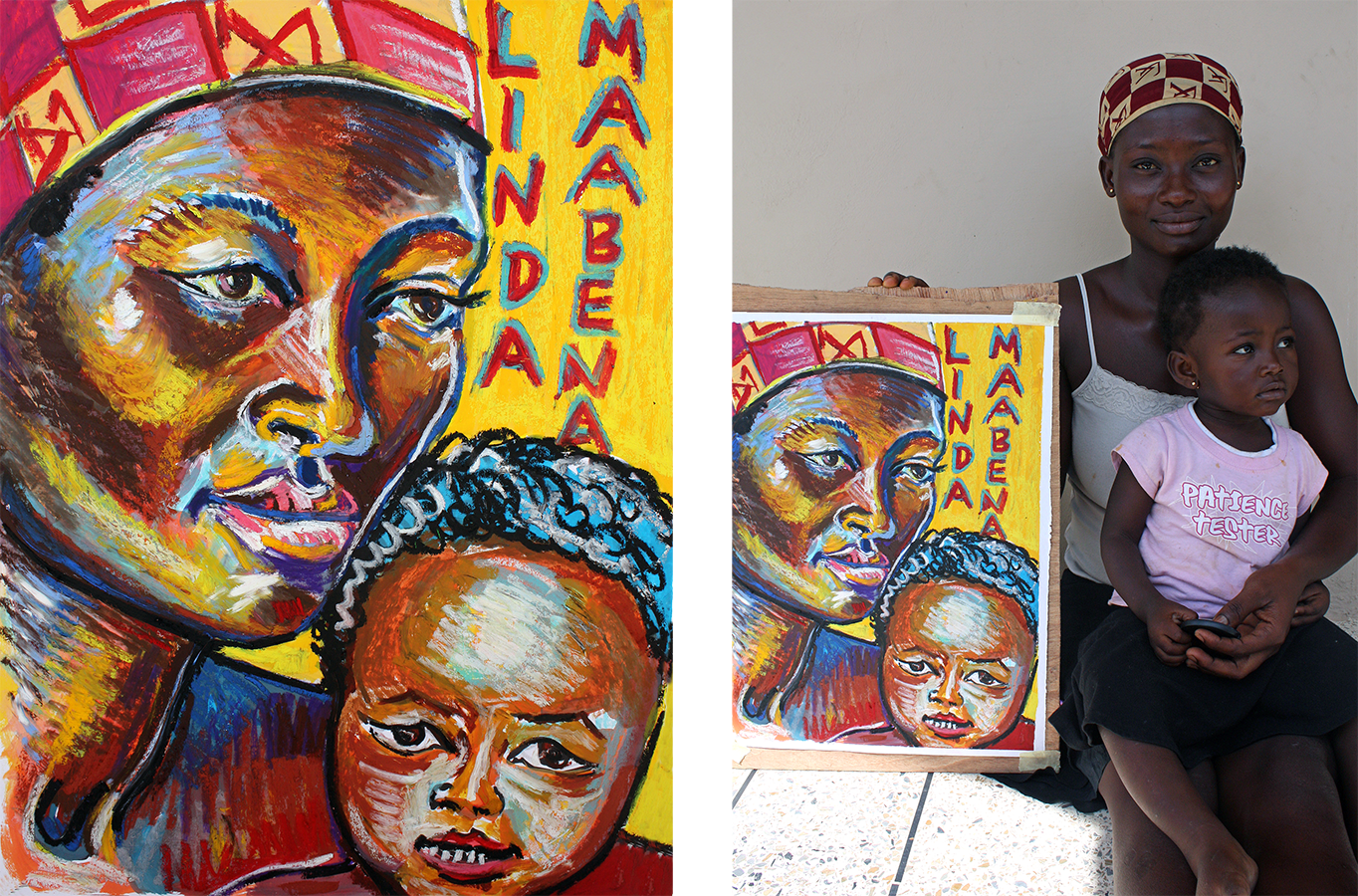 Linda ja Maabena, 2008, öljypastelli paperille, 45 x 35 cm, valokuva, 45 x 35cm