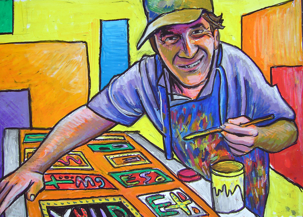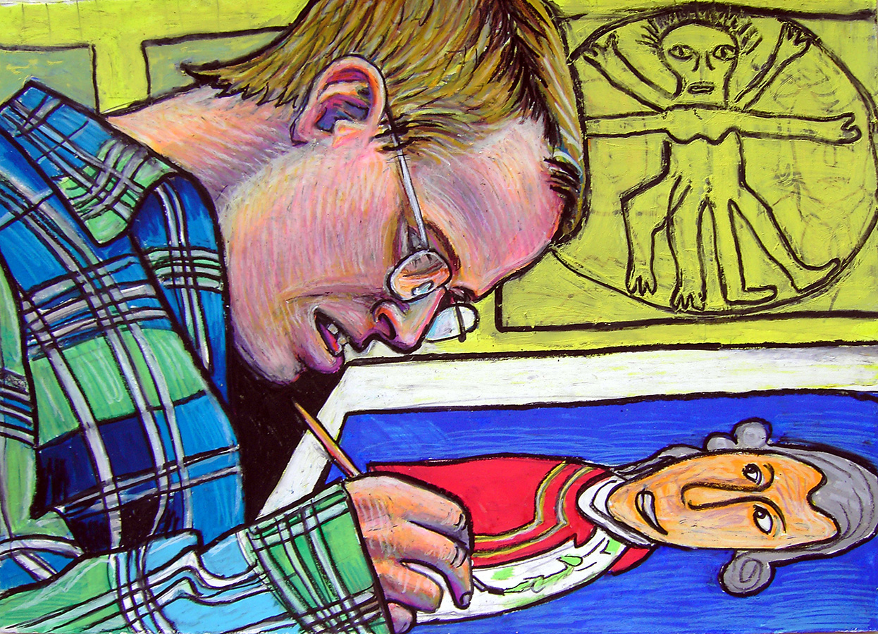 Puuseppä, 2008, öljypastelli paperille, 45 x 35 cm, valokuva, 45 x 35 cm