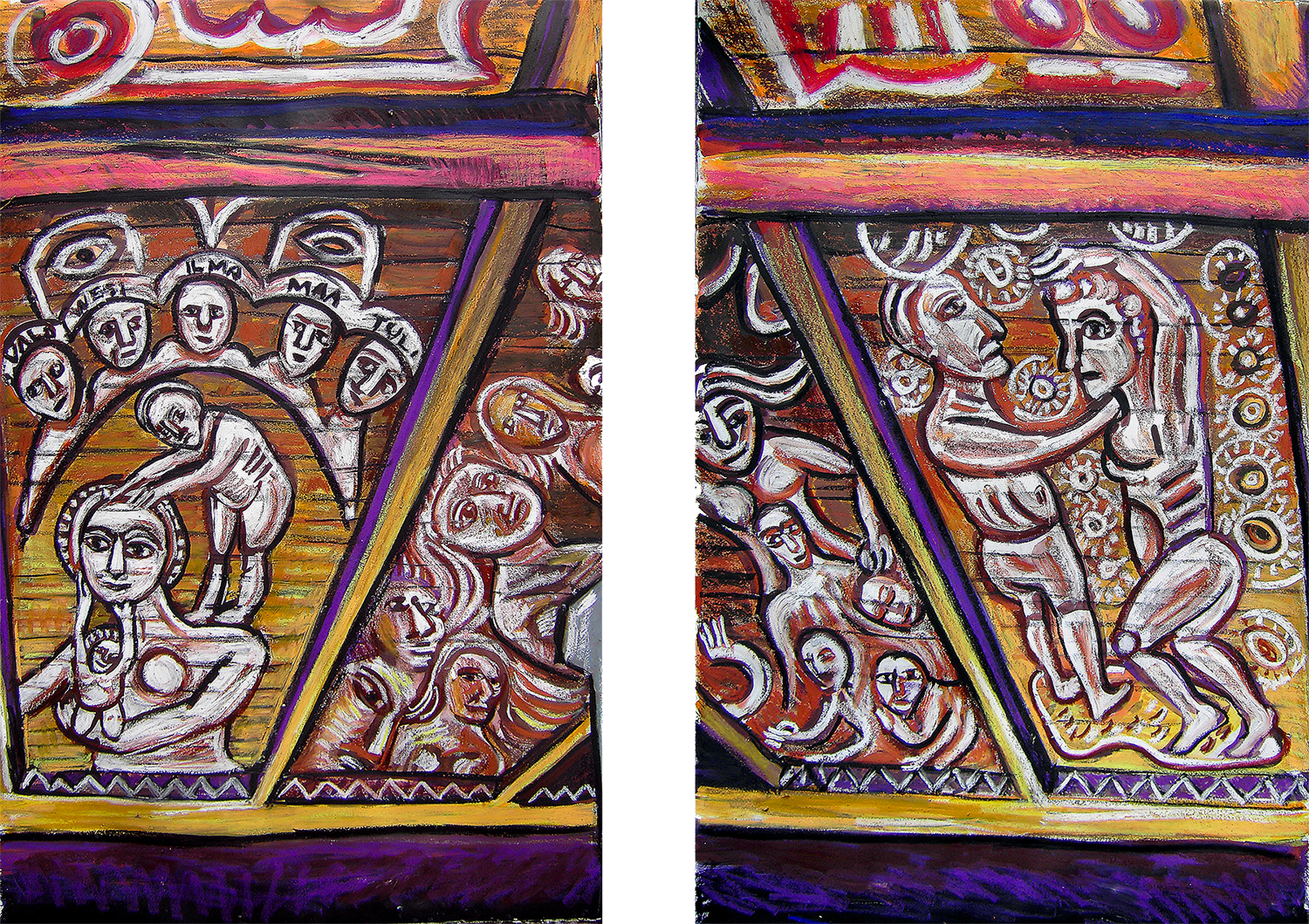 Metsämökin kattomaalaukset, 2005, 2 kpl, öljypastelli, 2 kpl, 67 x 95 cm