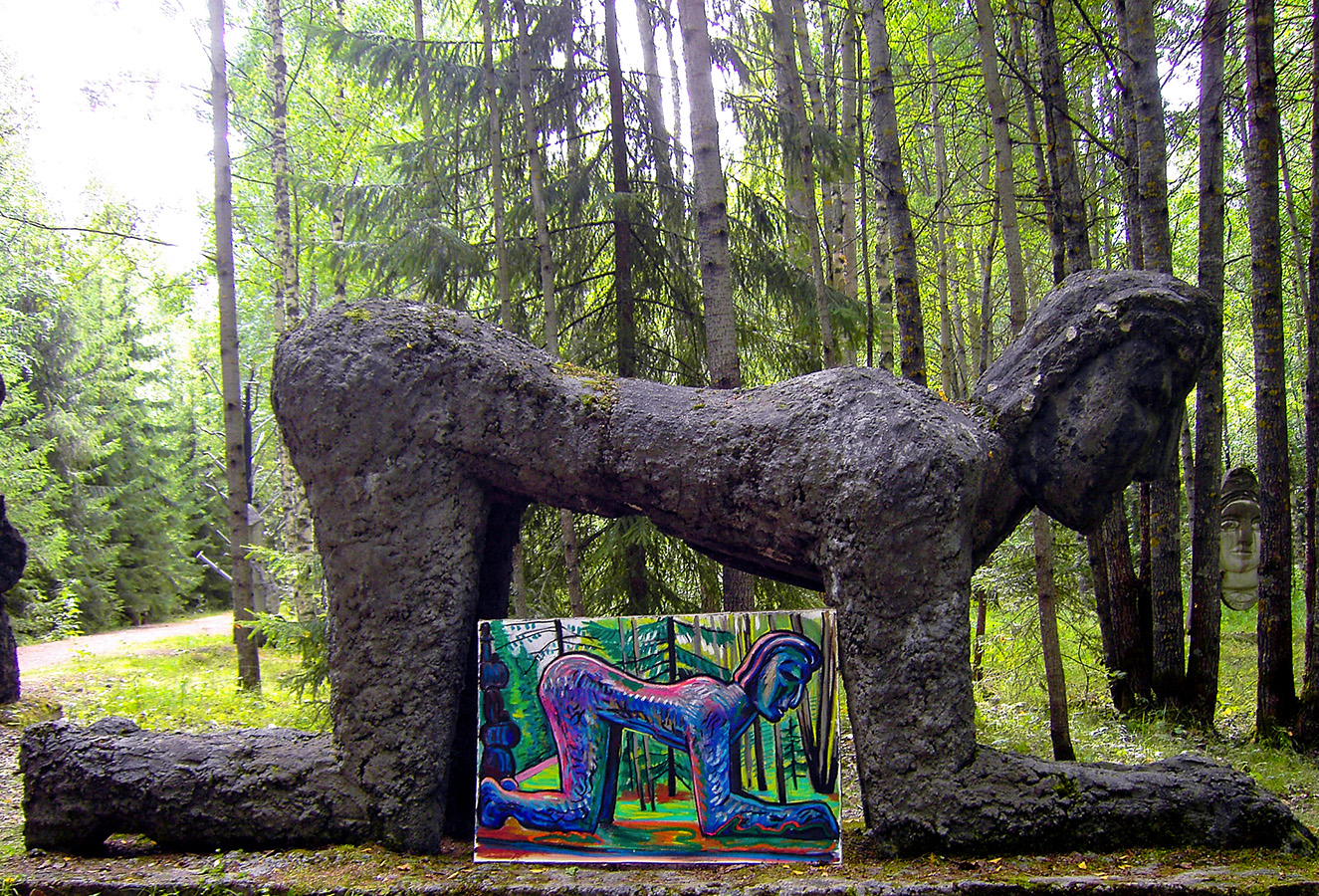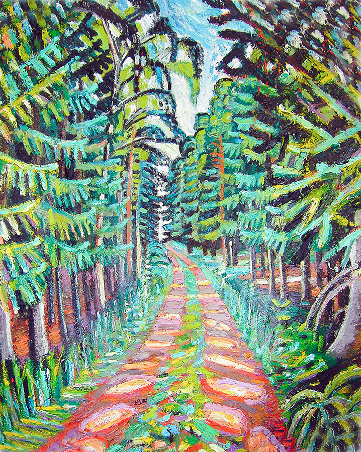 Metsätie, 2005, öljy lasikuitukuvulle, n. 120 x 100 x 40cm