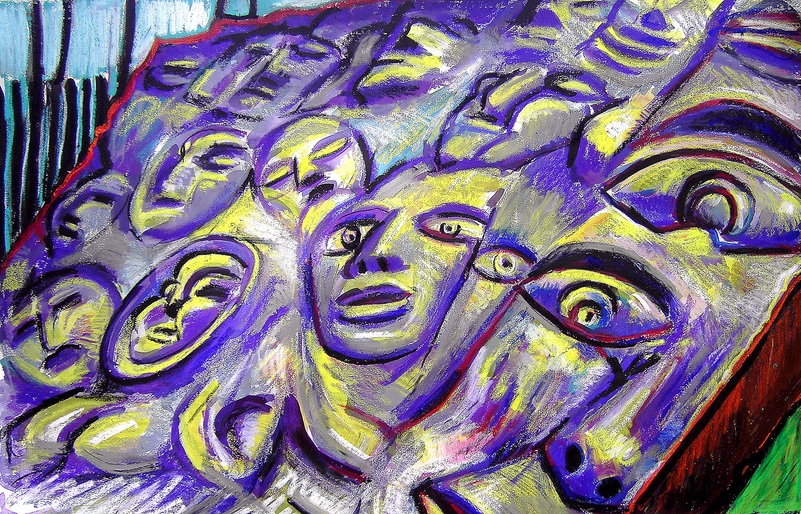 Kuolleiden muistolle, 2005, öljypastelli, 67 x 95 cm