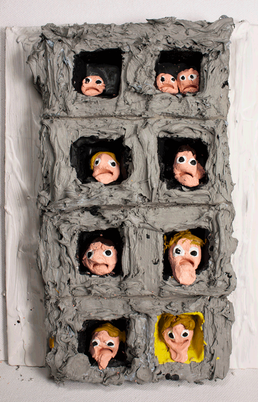 Yksilö, 2016, kipsi ja akryyli alumiinille, 2 kpl 40 x 30 x 25 cm