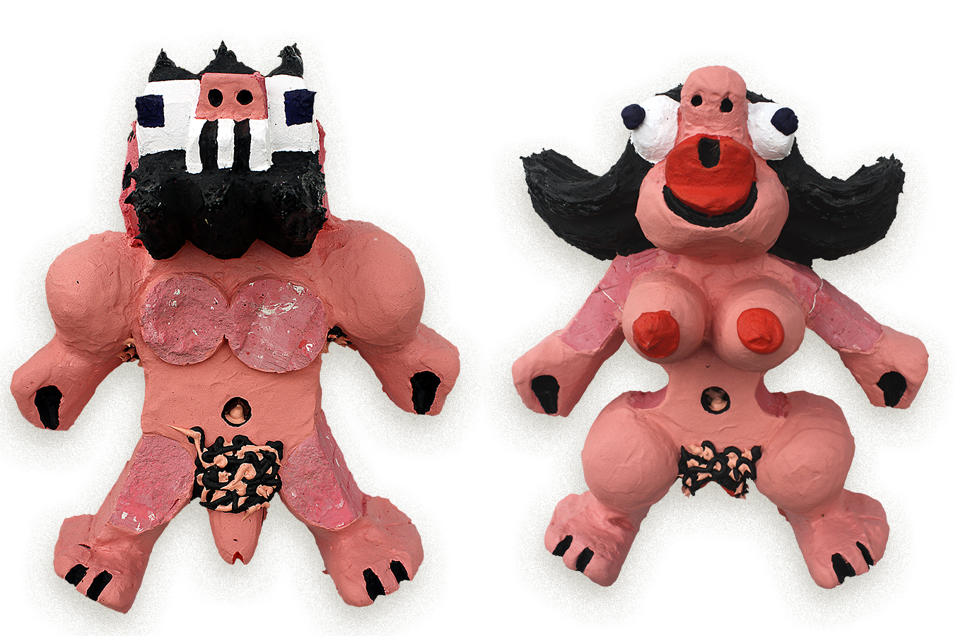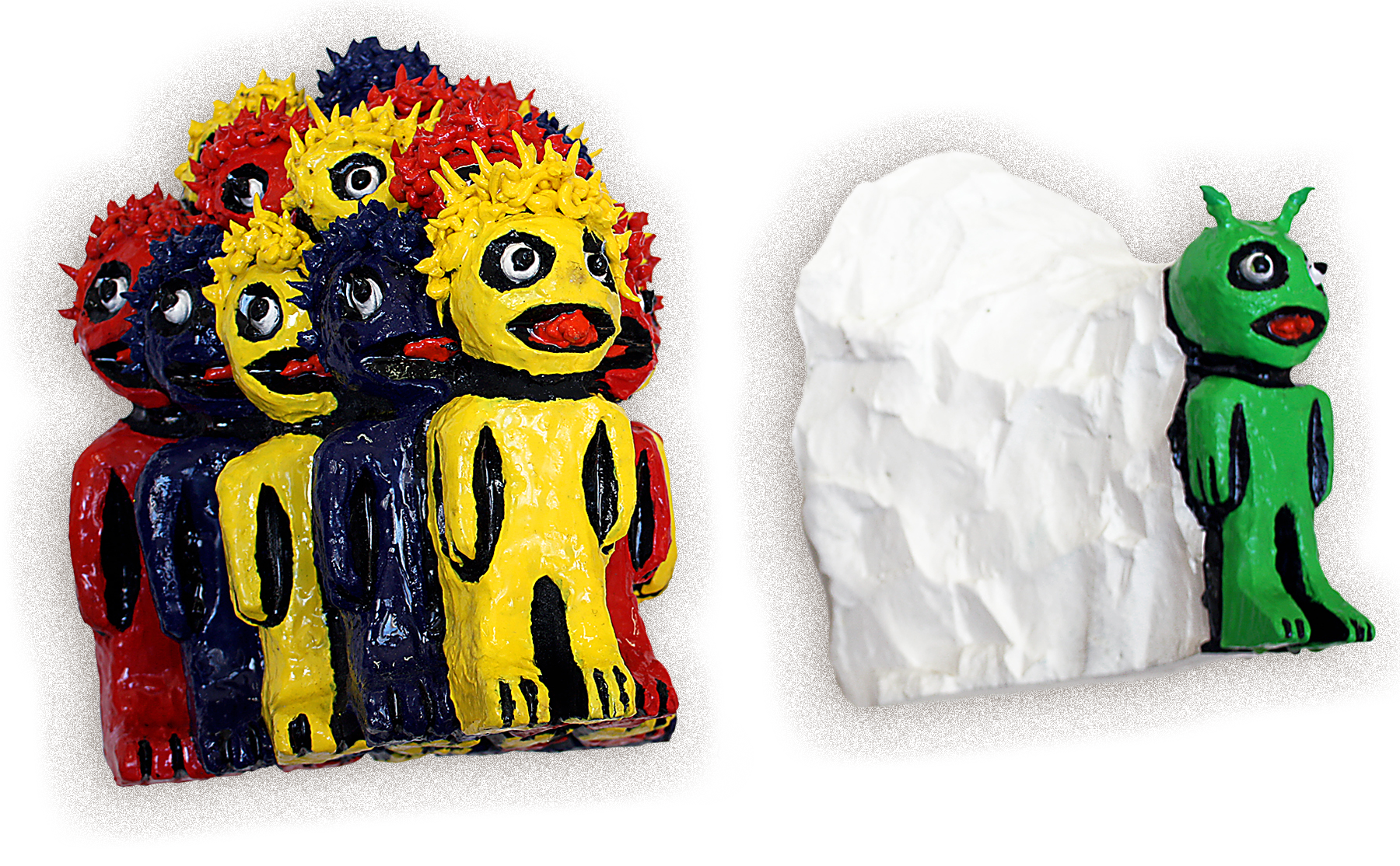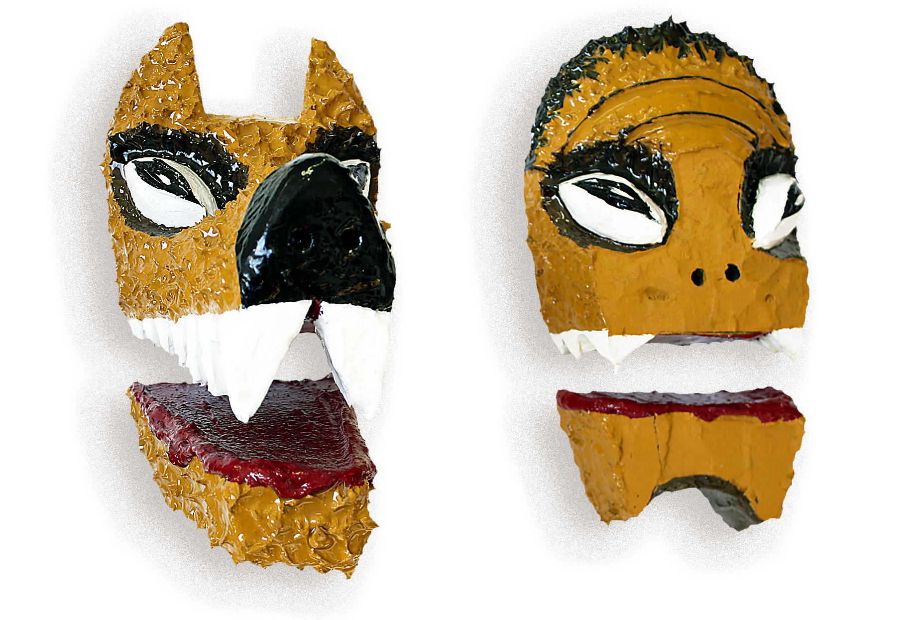 Ihmissusi, 2015, kipsi ja akryyli alumiinille, 2 kpl 40 x 30 x 25 cm