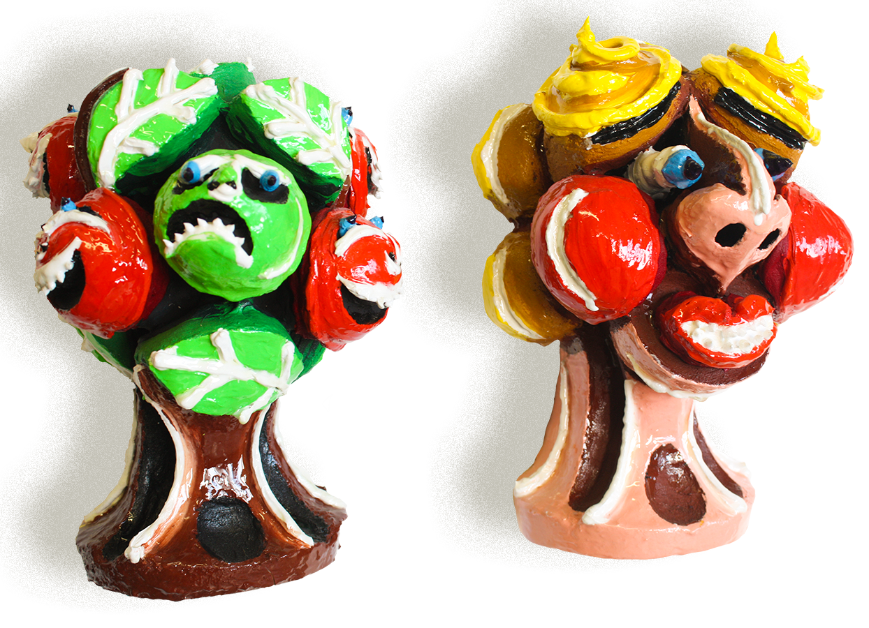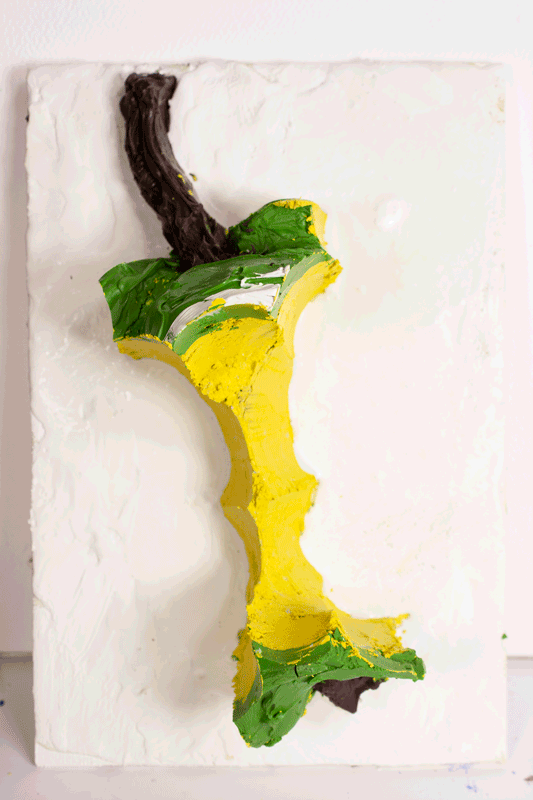 Omenaposki, 2015, kipsi ja akryyli alumiinille, 2 kpl 30 x 20 x 15 cm
